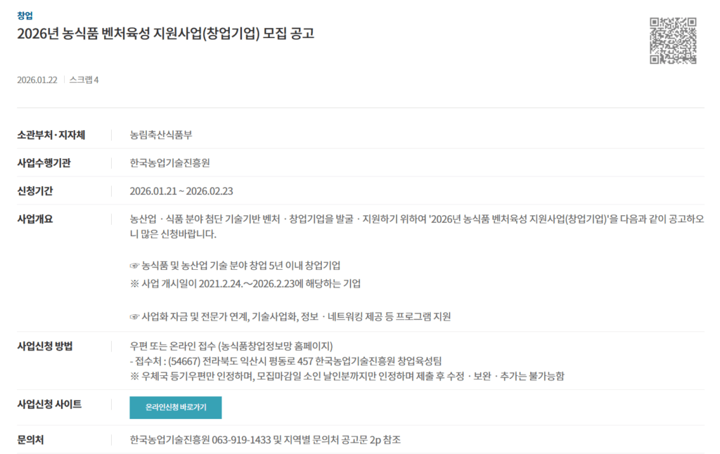 농식품 벤처 육성 지원사업 개요 파악하기